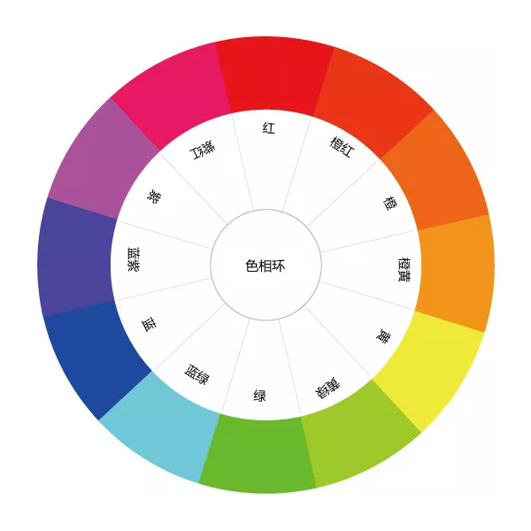 1、色相:说通俗点就是指颜色本身,主要的色相就是生活中我们常见的彩虹七色。将色相按照波谱上顺序进行排列,首尾相连形成的环状图形,即:色相环。