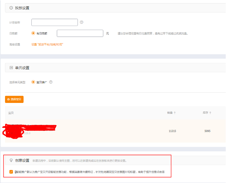 添加宝贝进去到计划,打开下面的创意设置,系统会根据宝贝属性标题以及买家兴趣自动匹配创意,来提升点击率。