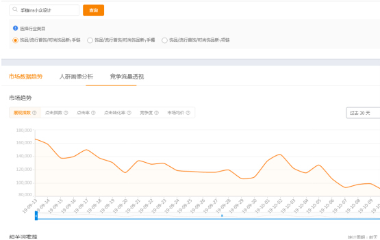 ②直通车付费推广的关键词与宝贝类目的相关性。宝贝发布的类目和关键词的优先类目的一致性。特别是有的类目容易混淆,商家可以在发布宝贝的时候选择流量比较大的类目发布,这样的基础阶梯相对来说就比较高。这个数据我们可以在直通车的工具里面查询,看行业大盘情况和展现量来判断。