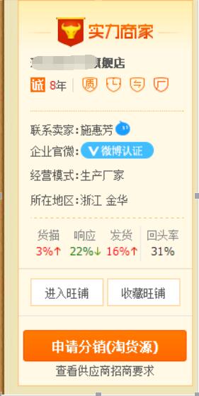 在这些都确定没有任何问题后,然后在看店铺导航里是否有“代理加盟”这一项,这是最为重要的!因为有的供应商只是要你下载数据包就没了,店铺的具体相关介绍都没有很多的了解!这样的供应商就不用去看了!因为这样的为这样的供应商代理会出现很多的问题,比如运费问题,退换货问题,运费怎么算,由谁来出?发货时间?什么快递?偏远地区怎么处理?等等。如果是什么都不说清楚就可以直接代理的,大家就可以不用看了!
